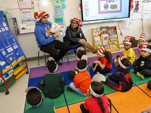 The day began at 9 a.m. at our Paterson Family Center (PFC) preschool, where volunteers read to all 105 three- and four-year-old students. NJCDC’s Founder and CEO Bob Guarasci welcomed our guests and thanked them for their commitment to fostering a love of literacy among Paterson’s youngest learners. Then, volunteers excitedly stepped into classrooms to read to the eager students.